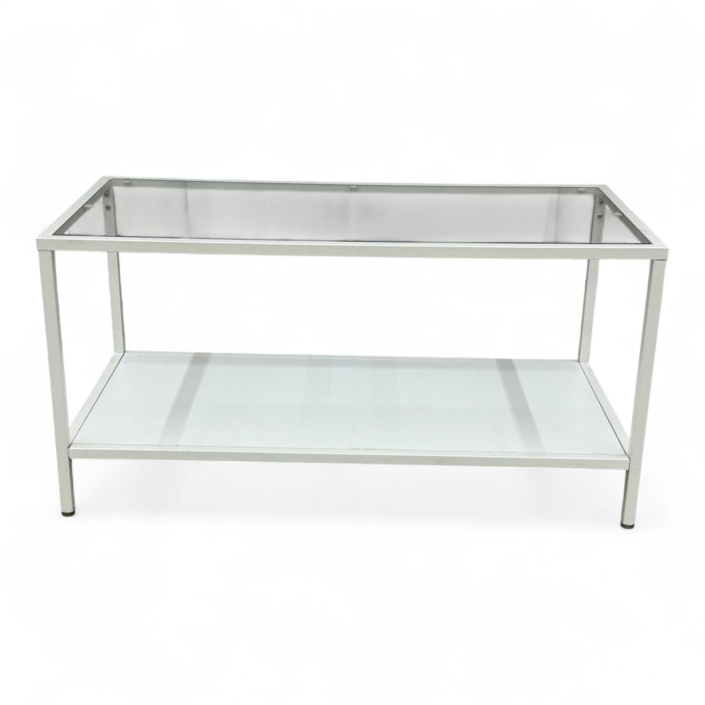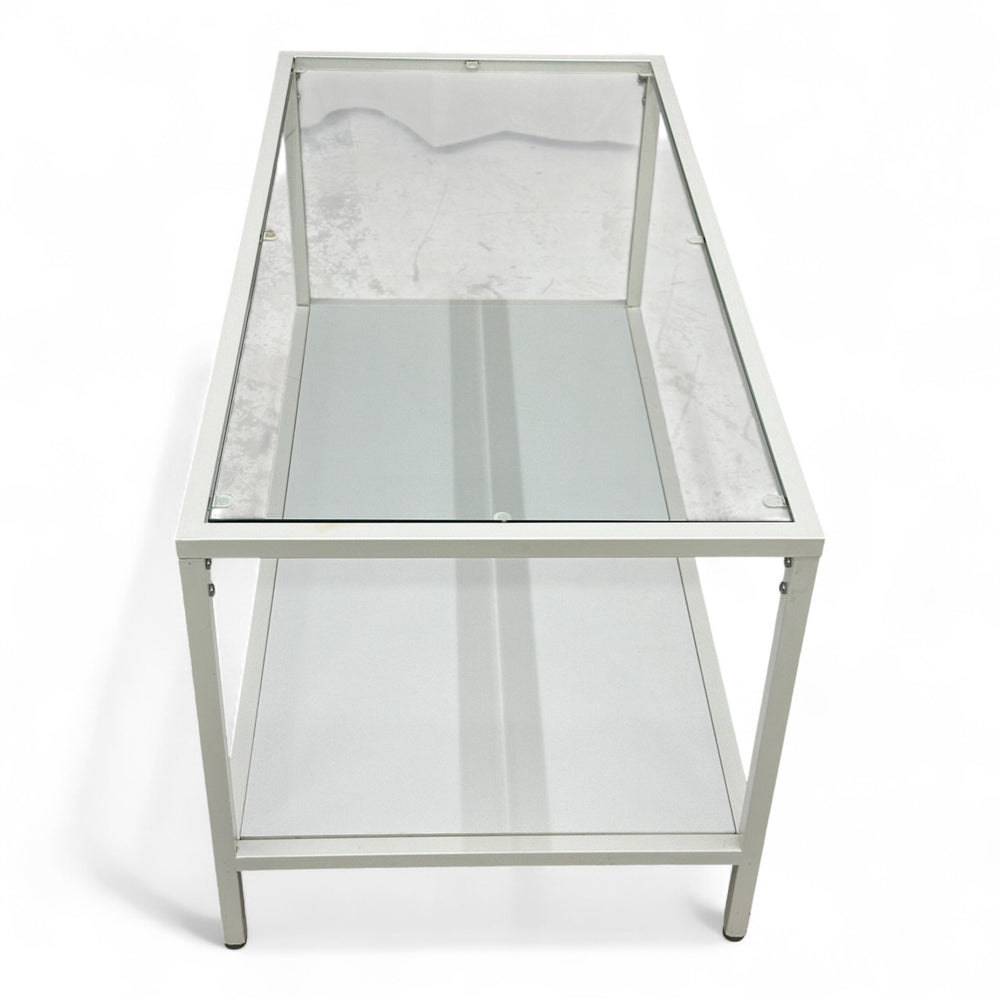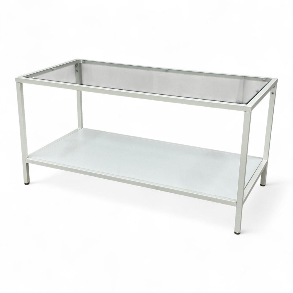 Kompakt og praktisk sofabord i størrelse 90x45 cm som passer små og mellomstore stuer. Den slanke dybden gjør bordet lett å plassere foran sofaen eller som avlastningsbord. Leveres nyrenset og klart til bruk.